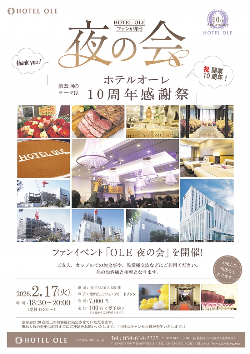 2/17(火)OLE夜の会「ホテルオーレ 10周年 感謝祭」